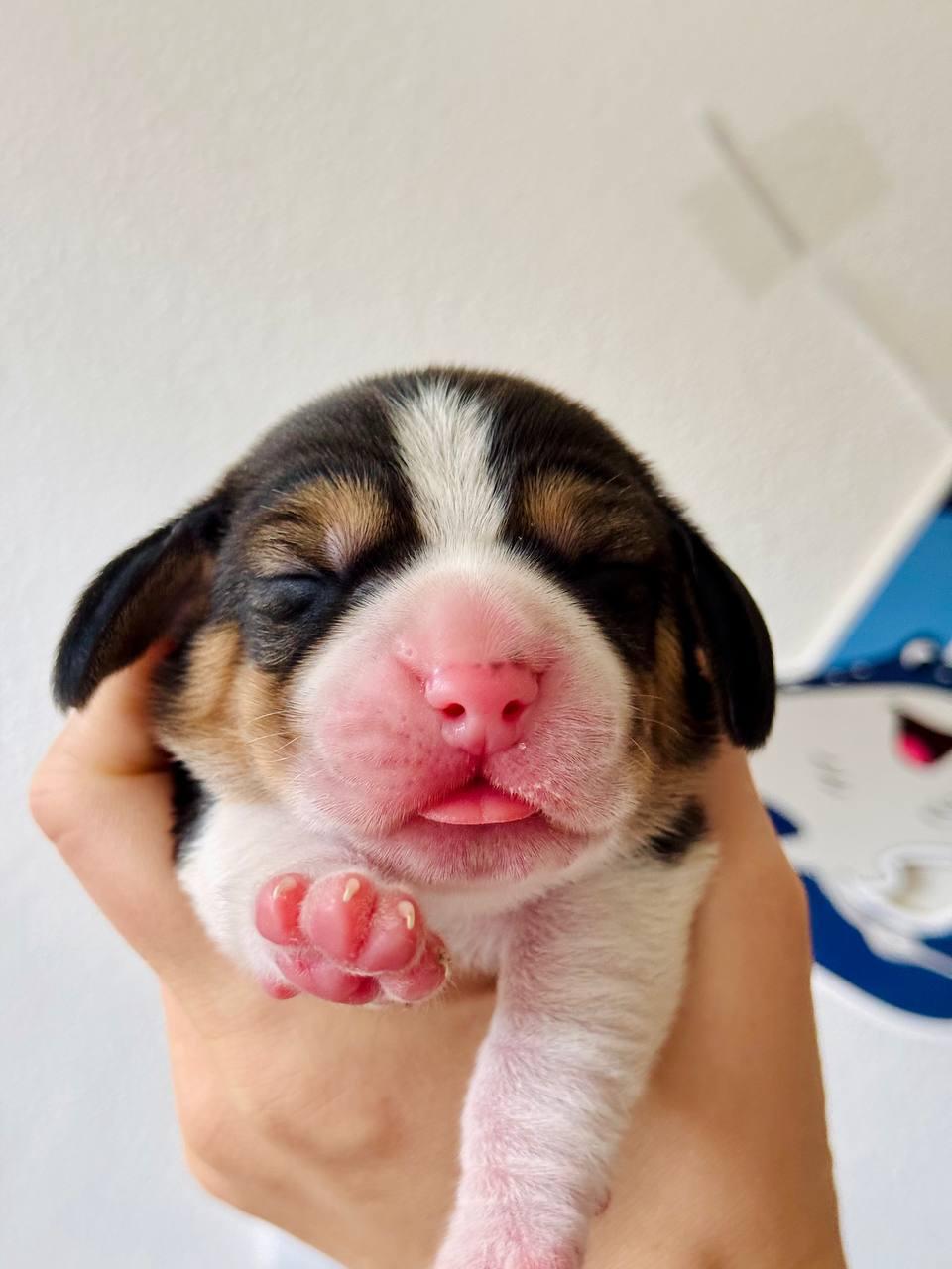 Narodil se jako poslední, ale je největší, nejuvědomělejší, poslušný a hrdý. Už v půldruhém měsíci se snadno učí jednoduchým povelům, rád se mazlí a celkově je to prostě krásný kluk. 🐶✨