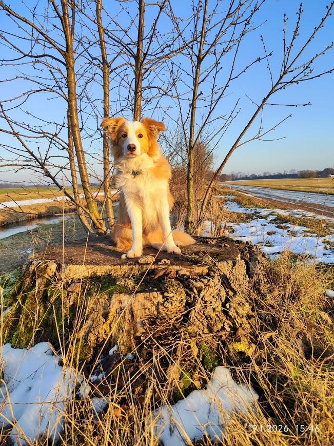 Medový kluk - spokojený pejsek, drží se v kontaktu s ostatními, někdy zaspí i krmení. Kamarádí s Hopíkem.