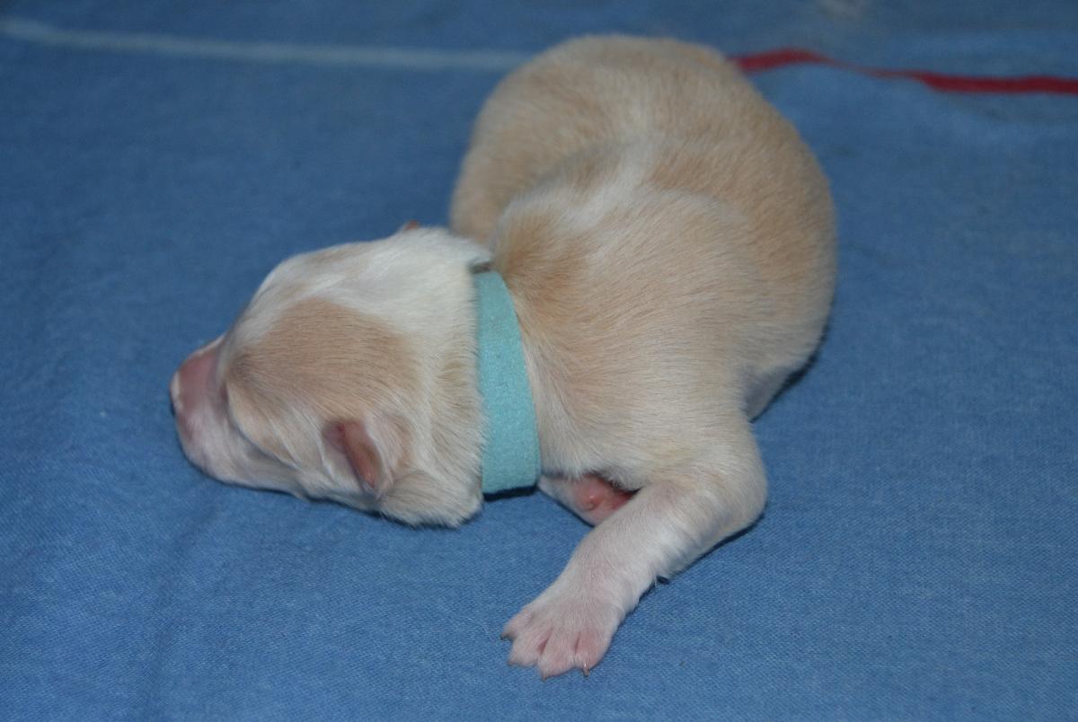 Čiperný pejsek, který rychle dohonil svoji nejnižší porodní váhu. S největším přírůstek dosáhl po třech dnech váhu 396 gramů.