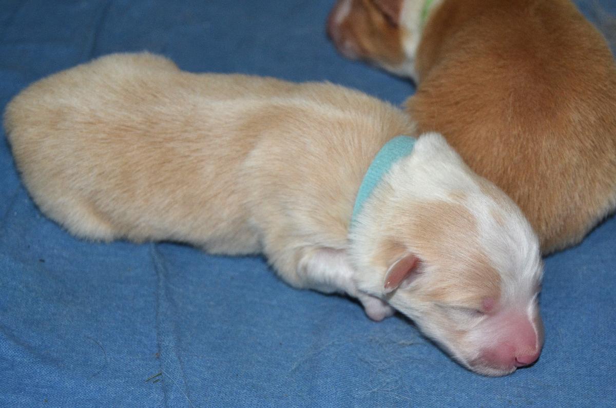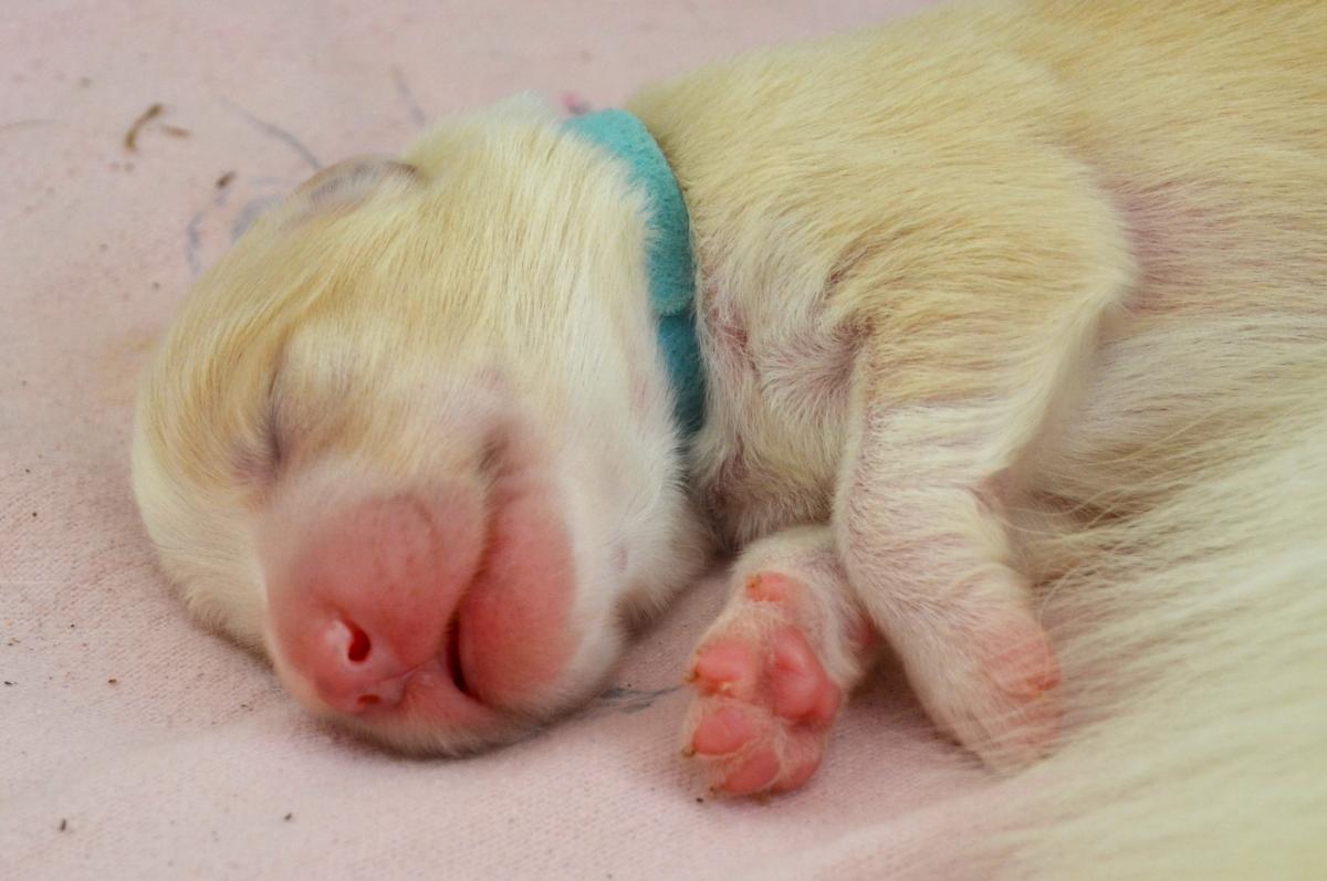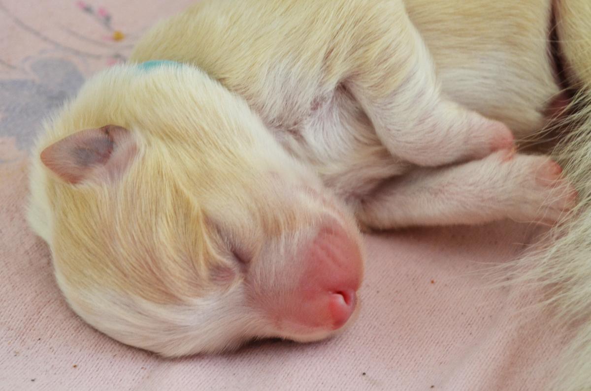 Prvorozený , nejmenší z vrhu, 269 gr. Po prvním vážení však má největší přírůstek na 315 gramů.