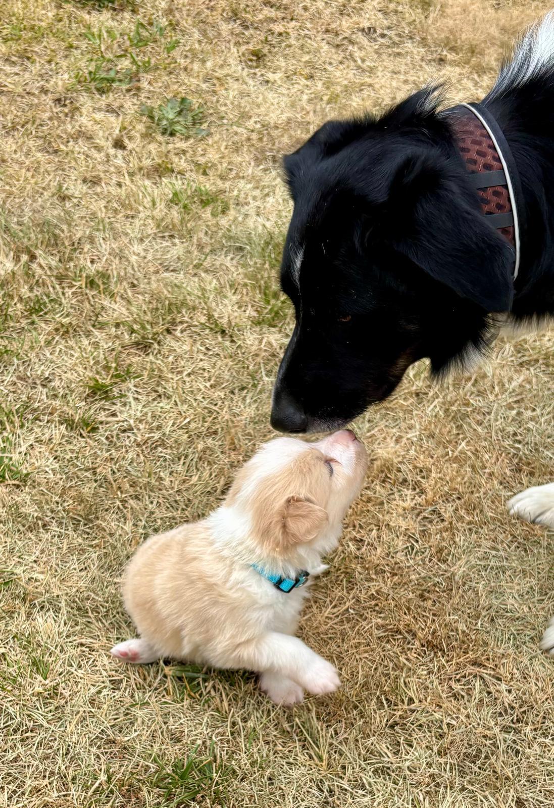 Hugo čeká na svou návštěvu tento týden. Je to veselý a pohodový psík, má rád hrátky se sourozenci, často dovádí se sestříčkou Hailey.