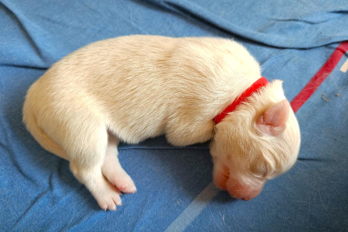 Naše jediná fenečka, narozena třetí v pořadí, porodní váha 295 gramů.