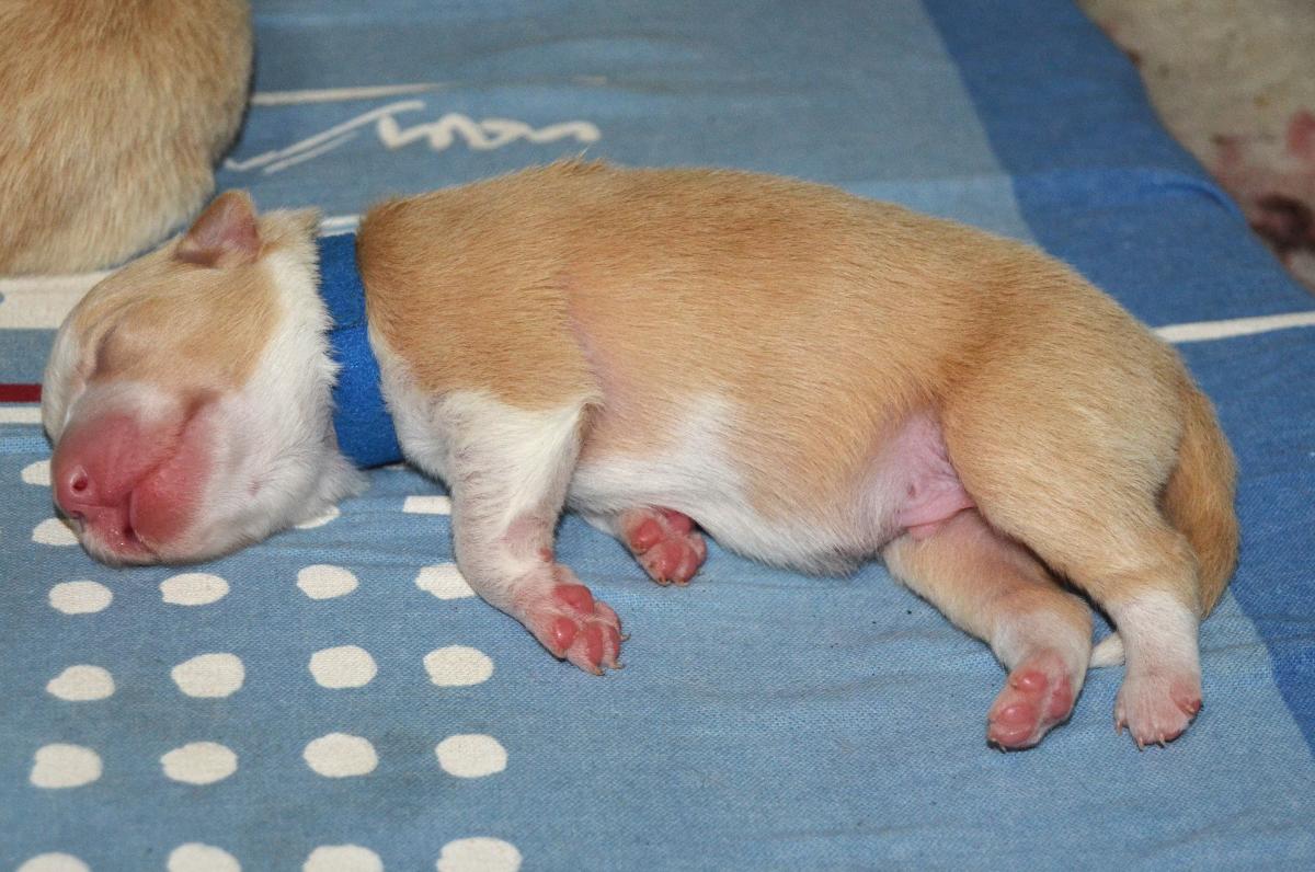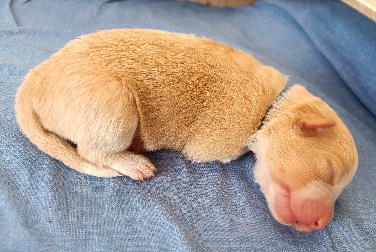 Čiperný pejsek, nenechá se odstrčit, po třech dnech váží 390 gramů.
