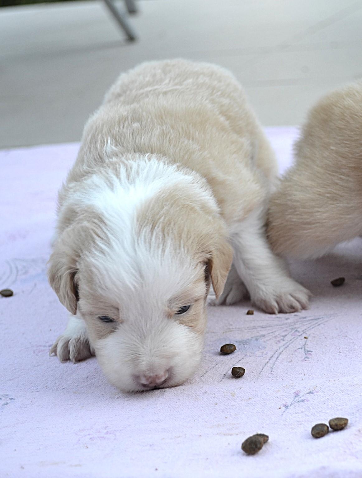 Medový kluk - spokojený pejsek, drží se v kontaktu s ostatními, někdy zaspí i krmení. Kamarádí s Hopíkem.