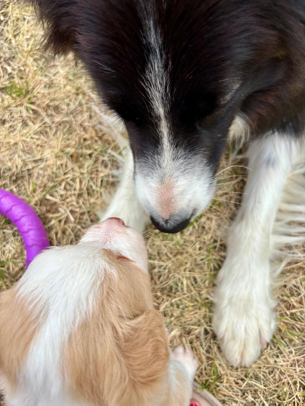 Honey , spokojený , kontaktní pejsek , začíná objevovat svět.