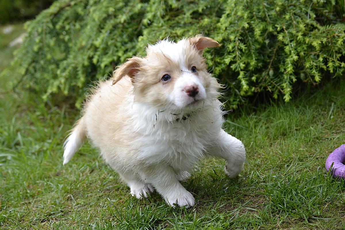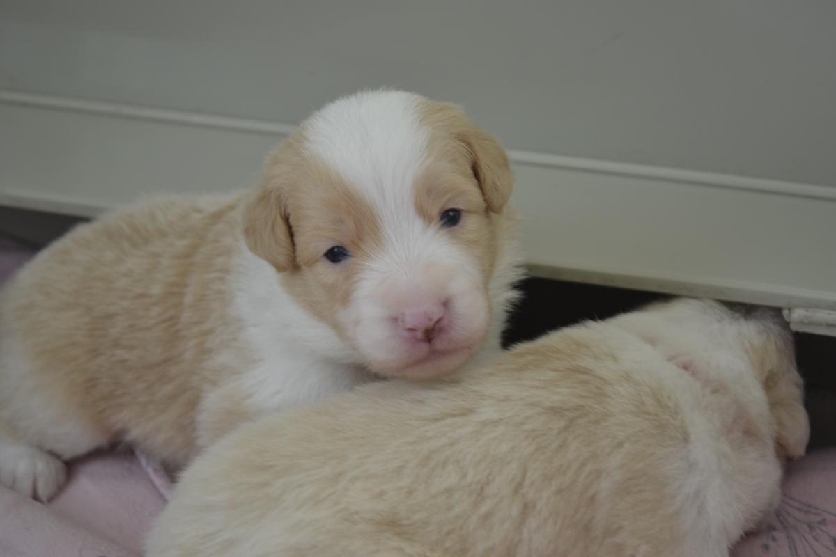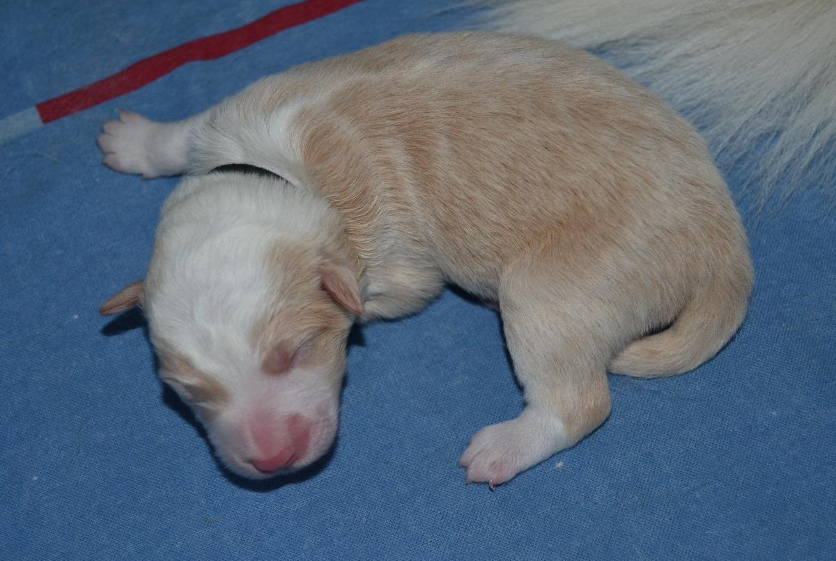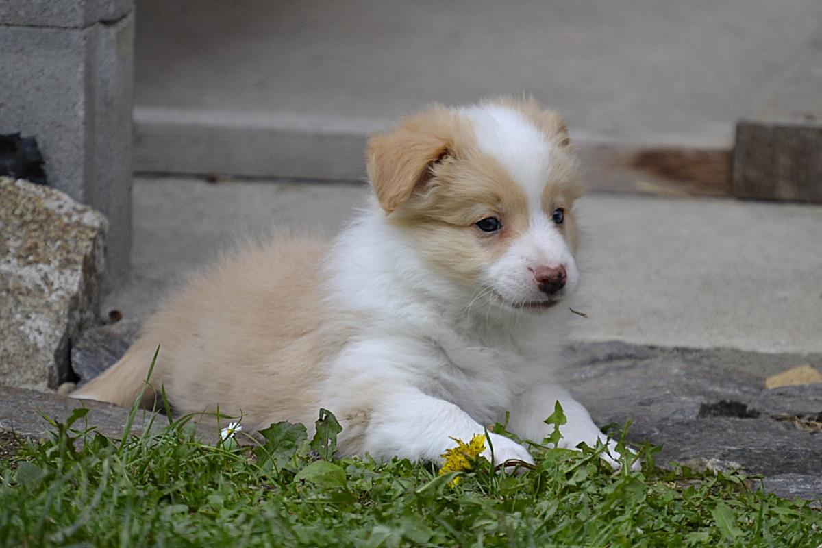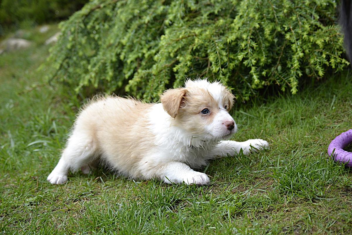Hardy je klidný, pohodový pejsek. Váří 1111 gramů. S největší pravděpodobností bude mít modré oči, to proto, že po tatínkouvi nese merle gen.