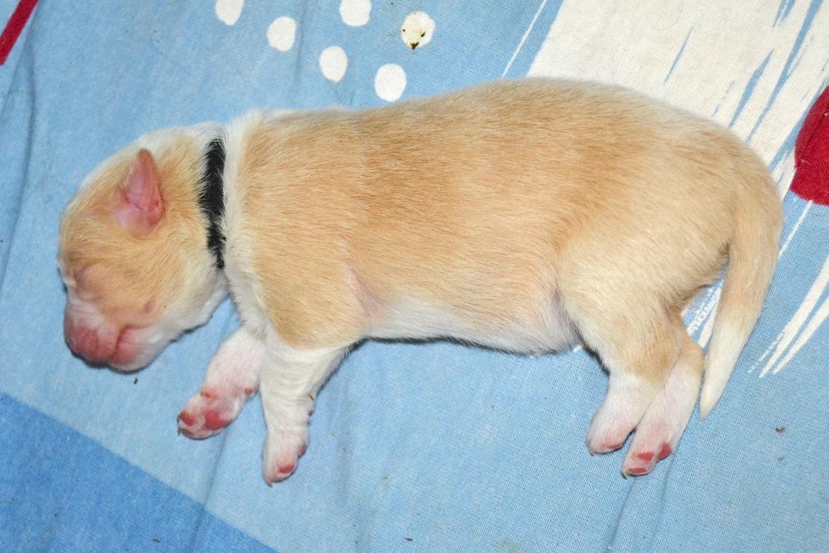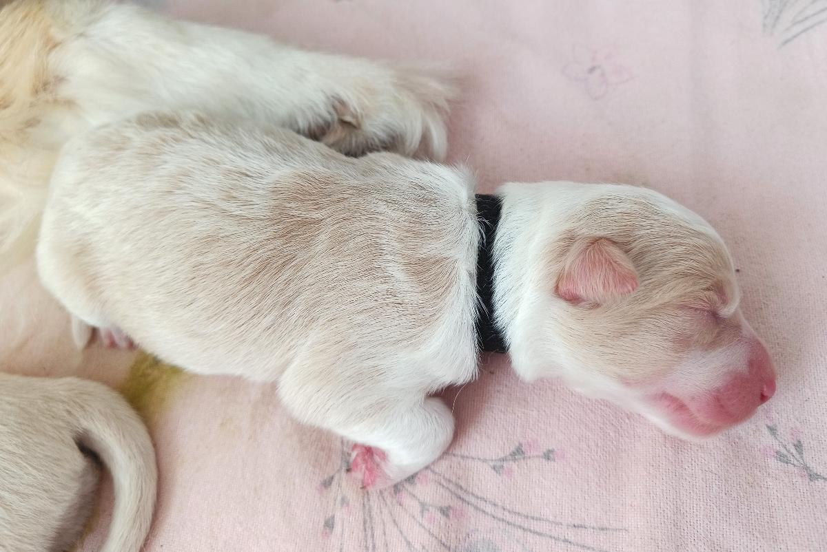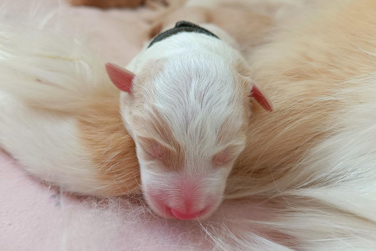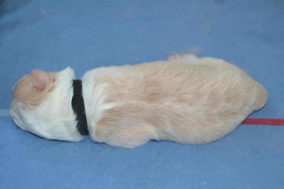 Malý Hurikán - silný, velký a klidný pejsek, často spí sám, bude nebojácký, samostatný. Váží 660 gramů.